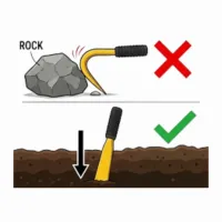 Use the khurpa with a direct stabbing or digging motion. Do not use it as a pry bar to lever out heavy rocks, as this can twist the neck or break the handle connection.