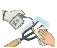 Periodically apply a light coat of oil to the black tines. This creates a protective barrier against the acidic nature of garden soil.