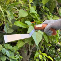 This J.S.P. Khurpi is a multi-purpose hand tool designed for precision work in pots, indoor plants, and balcony gardens. It features a broad, high-quality steel blade with a sharp flat edge that effortlessly slices through weeds and aerates compact soil to promote healthy root growth. The tool is durable, boasting a hand-finished wooden handle secured by a heavy-duty metal reinforcement plate to ensure long-lasting stability. Its compact size and ergonomic grip provide maximum control and comfort, making it the perfect choice for detailed gardening tasks where larger tools simply cannot reach.
