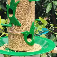 यह बड़ा पक्षी फीडर झोपड़ी जैसा बना है जो पक्षियों को खाना और छाया देता है। इसे आसानी से टांगा जा सकता है और यह बारिश और धूप से खाने को बचाता है। इसके रंग चमकीले हैं और यह आपकी बालकनी या बगीचे को सुंदर बनाता है।