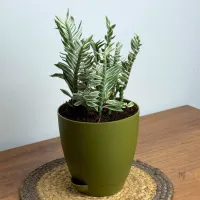 Pedilanthus (Pedilanthus tithymaloides), commonly known as Devil’s Backbone, is an eye-catching indoor plant known for its zig-zag stems and white-green variegated leaves. Its upright growth and tidy form make it a good fit for modern homes, especially in bright indoor spots where the leaf pattern looks its best. This plant stays compact and slowly grows into a fuller shape over time, giving your space a clean, decorative feel without overwhelming the room. At Ropani, we pot it in a self-watering container that keeps the soil lightly moist, making everyday care simple and steady. A distinct, easy-going plant that blends style and greenery beautifully in everyday home settings.