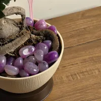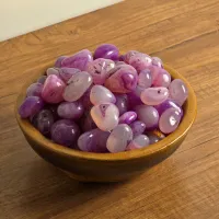 This Purple onyx pebbles featuring a regal and calming palette of lavender, violet, and deep plum. Each stone is polished to a high-gloss finish, revealing unique "eye"patterns, translucent layers, and the delicate natural banding characteristic of agate. These pebbles add a sophisticated, artistic touch to any botanical arrangement or home decor setup.