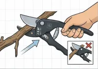Always place the branch as deep into the jaws as possible (near the pivot) for maximum leverage. Since this is an anvil type, it works by pressing a sharp blade against a flat metal base; it's best for dry, woody stems rather than soft, green ones.