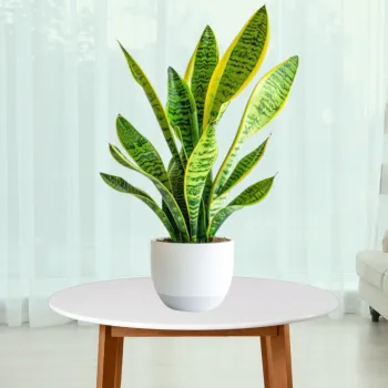 A subtle pop of colour with a soothing shape, this White Snake Plant pairs beautifully with simple interiors and brightens even the smallest nooks.