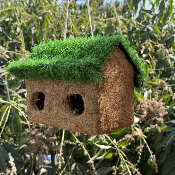 लकड़ी का यह छोटा सा चिड़ियाघर गौरैया और फिंच जैसी छोटी चिड़ियों के लिए एक सरल और सुरक्षित घोंसला बनाने की जगह के रूप में डिज़ाइन किया गया है। इसमें हल्के नीले रंग का मजबूत ढांचा है जिस पर ऊर्ध्वाधर पैनल लगे हैं और इसके विपरीत सफेद रंग की ढलान वाली छत है जो बारिश के पानी को बहाने में मदद करती है। सामने की तरफ एक गोलाकार प्रवेश द्वार और दो पहले से ड्रिल किए गए माउंटिंग छेद हैं, जिससे इसे बगीचे की दीवारों, बालकनी के खंभों या बाड़ पर आसानी से लगाया जा सकता है। इसका साफ-सुथरा और उपयोगी डिज़ाइन घर के बगीचों या शहरी बालकनियों के लिए आदर्श है जहाँ जगह सीमित है, और यह चिड़ियों को साल भर आराम करने या घोंसला बनाने के लिए एक सुरक्षित जगह प्रदान करता है।